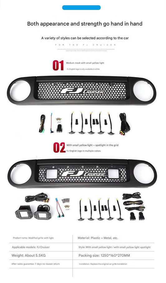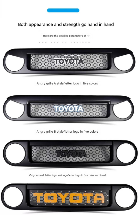 Front Grill for Toyota FJ Cruiser 2007-2023 – Custom Replacement Grille & Car Accessories multi designs and colors Suitable for fj cruiser grille modification black warrior front face grille accessories